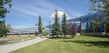 Pearson is also connected to the Village Square Leisure Center by a skyway. The walkway is not used anymore because of safety and legal reasons between the Calgary Board of Education and The City of Calgary.[5] The Village Square Leisure Center includes services such as a public library, wave pool, gym, and many volunteer opportunities.[6]