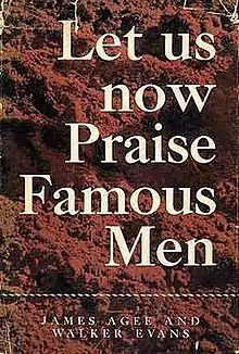 Let Us Now Praise Famous Men is a book with text by American writer James Agee and photographs by American photographer Walker Evans, first published in 1941 in the United States. The work documents the lives of impoverished tenant farmers during the Great Depression. Although it is in keeping with Evans's work with the Farm Security Administration, the project was initiated not by the FSA, but by Fortune magazine. The title derives from a passage in the Wisdom of Sirach (44:1) that begins, "Let us now praise famous men, and our fathers that begat us".