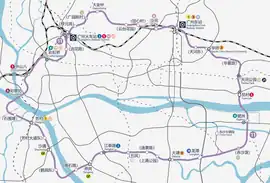 Line 11 of the Guangzhou Metro (Chinese: 广州地铁11号线; pinyin: Guǎngzhōu Dìtiě Shíyīhàoxiàn) is a rapid transit rail line under construction in Guangzhou. It will be a loop line around the city center, connecting Guangzhou railway station, Guangzhou East railway station, Pazhou, and Fangcun.[1]