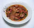 Soutzoukakia Smyrneika (σουτζουκάκια σμυρνέικα) Spicy oblong meatballs with cumin and garlic served in tomato sauce.
