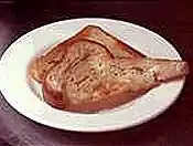 Very similar to black pudding, but containing no blood. Contains pork meat and fat, suet, bread, and oatmeal formed into a large sausage shape. Picture shows slices of white pudding (light) and black pudding (dark). |