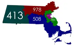 Media related to Area code maps of Massachusetts at Wikimedia Commons- NANPA area code map of Massachusetts