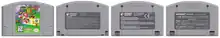 The list of Nintendo 64 games includes 388 licensed releases spanning from the platform's launch in 1996 to the final release in 2002. The Nintendo 64 home video game console's library of games were primarily released in a plastic ROM cartridge called the Game Pak. This strategic choice of high-performance but lower-capacity medium was met with some controversy compared to CD-ROM.[1][2][3][4] Two small indentations on the back of each cartridge allows it to connect or pass through the system's cartridge dustcover flaps.[5] All regions have the same connectors, and region-locked cartridges will fit into the other regions' systems by using a cartridge converter or by simply removing the cartridge's casing.[6] However, the systems are also equipped with lockout chips that will only allow them to play their appropriate games. Both Japanese and North American systems have the same NTSC lockout, and Europe has a PAL lockout. A bypass device such as the N64 Passport or the Datel Action Replay can be used to play import games, but a few require an additional boot code.[7]