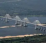 ![]() | 5 | General Rafael Urdaneta Bridge | 235 m (771 ft)(x5) | 8,678 m (28,471 ft) | Cable-stayed Concrete deck and cable-stays, 6 concrete pylons 160+5x235+160 | 1962 | Maracaibo 10°34′28.1″N 71°35′30.9″W | Zulia | [S 5] [13] [14] | |