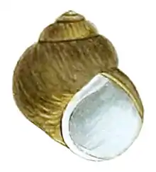 ![]() Outline drawing of a shell of Lithoglyphus naticoides and its operculum |