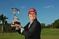Lorie Kane, CM (born December 19, 1964 in Charlottetown, Prince Edward Island, Canada) is a professional golfer on the LPGA Tour. She began her career on the LPGA Tour in 1996 and has four career victories and 99 top-10 finishes on the tour. She won the Bobbie Rosenfeld Award in 2000 and became a member of the Order of Canada at a ceremony in December 2006.[1][2] Kane was the second Canadian to have multiple wins on the LPGA circuit in one season, in 2000, after Sandra Post performed the feat twice, in 1978 and 1979. The next person to do so was Brooke Henderson, in 2016.[3] In 2015, she was inducted into the Canadian Golf Hall of Fame.[4] In May 2020 it was announced that she would be inducted into Canada's Sports Hall of Fame as part of the class of 2020-2021.[5]
