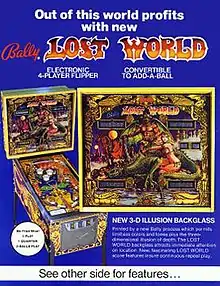 Lost World is a pinball machine released by Bally in 1977. The game features a fantasy theme.[1] It should not to be confused with the pinball machine Escape from the Lost World from 1987.[2]
