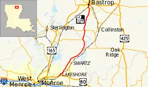 | Ouachita | Monroe | 0.000 | 0.000 | Southern terminus; location also known as Sicard | |
