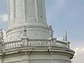 There are ten zinc statues above the first level's balustrade, each standing on a pedestal over a Corinthian column. They are listed clockwise below with identifiable features:[13][14]