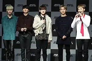 MAP6 (Korean: 맵식스) is a South Korean boy band formed in 2015, which consists of five members: Minhyuk, J.Jun, Sign, Sun and J.Vin.[2] They debuted on November 10, 2015, with the single "Storm".[3]
