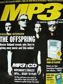 MP3 was a monthly magazine published by Future plc in the UK. It covered the topic of downloading MP3 digital audio files from the internet. Intended to capitalise on the popularity of the MP3 format and websites such as MP3.com and PeopleSound.com, it offered product reviews, guides, charts and advice. It hoped to carve a niche in an area already covered by other music and computer magazines and offered a cover-mounted compact disc. Advertising space was sold by Future stablemate Computer Music, who shared the same target audience.[1]