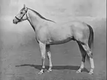Mahmoud (1933–1962) was a French-bred, British-trained Thoroughbred racehorse and sire. In a career which lasted from April 1935 to September 1936 he ran eleven times and won four races. In 1935 he won two of Britain's most important two-year-old races and was officially rated the second-best colt of his generation. In 1936 he won only once from five starts, but this win came in the Derby in which he set a race record which stood for fifty-nine years, and became the third of only four greys to win the race.[1] After being retired from racing he was sold and exported to the United States, where he became a highly successful breeding stallion and was America's Champion sire in 1946.