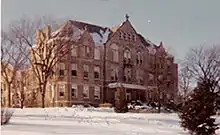 Construction of Old Main was started in 1873 and completed in four phases over the course of 21 years. Originally home to Sacred Heart College, the building was purchased from the Brothers of Holy Cross by B. Myron Cedarholm in 1968. It now houses three floors of classrooms, administrative offices, Maranatha Baptist Academy, the campus post office, and two fine arts performance halls.[11] Old Main is also home to the campus coffeehouse Old Main Cafe which was established in 2007.