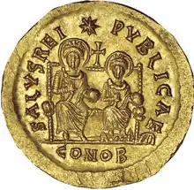 ![]() Solidus of Marcus with his father Basiliscus | |