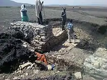 At Gemgema, May Be'ati and on other steep slopes, exclosures have been established; the dense vegetation largely contributes to enhanced infiltration, less flooding and better baseflow.[3] Physical conservation structures such as stone bunds[4][5] and check dams also intercept runoff.[6][7] In the May Be'ati exclosure, more than 1000 precise measurements were done in 2003 and 2004, using 15 runoff plots, where the volume of runoff was measured daily. The rock type (Antalo Limestone), slope gradient and slope aspect were the same, the only difference was the land management and vegetation density. Whereas in degraded rangeland, 35% of the rainfall flows directly away to the river (runoff coefficient), this happens only for 13.4% of the rain in a recent exclosure and 1.7% in an old exclosure. For sake of comparison, the adjacent May Be'ati church forest has a runoff coefficient of only 0.1%.[3]