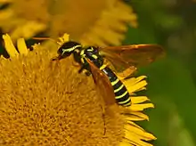 The Megalodontesidae (until recently spelled Megalodontidae,[1] a name already in use for a family of fossil molluscs) are a small family of sawflies, containing a single living genus, Megalodontes, with some 40 species restricted to the temperate regions of Eurasia. Larvae of Megalodontesidae feed on herbaceous plants. They are distinguished from the closely related Pamphiliidae by their serrate or pectinate antennae.[2]