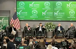 The center retains a number of scholars for publications, debates, and public forums including intelligence and foreign policy professionals, journalists, and politicians. The events are frequently broadcast nationally on the C-SPAN Network, and soundbytes and quotes from discussions have appeared frequently in national media outlets.[4] Previous speakers and hosts have included a range of federal agency leaders, including former Directors of Central Intelligence Gates, Woolsey, Deutch, Tenet, McLaughlin, and Goss, Director of National Intelligence James Clapper as well as former Directors of the Central Intelligence Agency Hayden, Morell, Petraeus, and Brennan.[5][6][7][8][9]