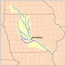 ![]() Map of the Des Moines River watershed with the Middle River highlighted | |
