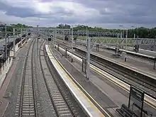 In May 2006, the Department of Transport announced a plan to upgrade the station.[6] The first phase added a down fast line platform 6, so that the existing platform 5 could be used for stopping express trains in either direction.[6] The second phase provided an additional terminating bay platform (2A), nominally to extend the Marston Vale Line Bedford/Bletchley service via the West Coast Main Line (WCML) to Milton Keynes Central.[7] This 5-car bay platform is indented into platform 1. The original bay platform 1 line was extended northwards to become a through platform (becoming the up slow line), and platform 2 line is now a terminating and reversing line, avoiding conflicting crossing movements.[6] This work was completed on 29 December 2008.[8] As of November 2021, a direct service between Bedford and Milton Keynes Central is not in any published plan, being overtaken by later events (see next).