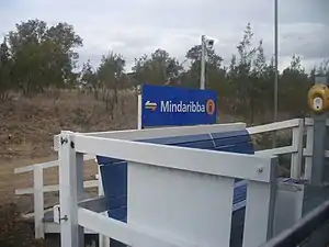 Mindaribba consists of a single wooden platform about three metres long. It is served by NSW TrainLink Hunter line services travelling between Newcastle and Dungog. There are five Dungog services and four Newcastle Services on weekdays, with three services in each direction on weekends and public holidays.[3] It is a request stop with passengers required to notify the guard if they wish to alight. The platform is so small that it has attracted some media attention[4]