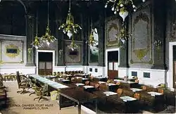 Before the construction of the original City Hall in 1873, city government officials worked out of rented space in the Pence Opera House building, located at Hennepin Avenue and 2nd Street.[2]