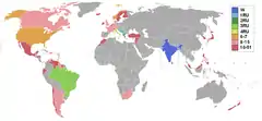 Countries and territories which sent delegates and results