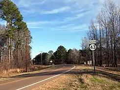 MS 43 heads northeast through a mix of woods and farmland as it has an intersection with MS 478 and passes through Shivers. It then comes to an intersection with MS 28, which it briefly follows westward as it has an intersection with MS 472 and passes through Pinola. The highway winds it way northeast as it parallels the Strong River for several miles before entering Mendenhall and immediately coming to an end at another intersection with MS 13 just west of downtown.[3]