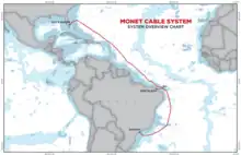 The MONET cable system is a subsea fibre optic telecommunications cable completed in December 2017.[2] Final splicing occurred in November 2016. Monet connects the cities of Praia Grande and Fortaleza in Brazil with Boca Raton in the United States.[1][2]
