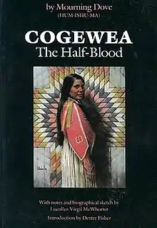 Cogewea was one of the first novels to be written by a Native American woman and to feature a female protagonist. It explores the lives of Cogewea, a mixed-blood heroine whose ranching skills, riding prowess, and bravery are noted and greatly respected by the primarily mixed-race cowboys on the ranch on the Flathead Indian Reservation. The eponymous main character hires a greenhorn easterner, Alfred Densmore, who has designs on Cogewea's land, which she had received as head of household in an allotment under the Dawes Act.