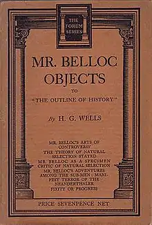 Mr. Belloc Objects to "The Outline of History" is a 1926 short book written by the British novelist H. G. Wells as a rebuttal of the criticism of historian Hilaire Belloc. In 1926, Belloc published his A Companion to Mr. Wells's "Outline of History" as a critique of Wells’ earlier historical textbook, The Outline of History. A devout Roman Catholic, Belloc was deeply offended by Wells’ treatment of Christianity in The Outline.