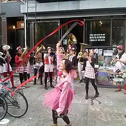 The museum, founded by neighborhood activists in 2012, documents this history. It is located in the storefront of C-Squat, one of the few still-occupied squats on the Lower East Side.[3] The museum is “decidedly local,” run by local volunteers, and presents the neighborhood's history through a combination of exhibitions, walking tours, and events.[4] Permanent exhibitions explore various themes aspects of the neighborhood's radical history, including sustainability, activist spaces, and the Occupy Wall Street movement. Rotating exhibitions have covered 1980s political street posters and stencils and the community garden movement; a current exhibition documents the punk movement and its politics. The educational walking tours lead participants through neighborhood squats and community gardens, describing complex histories and struggles with developers and police over the control of urban space in the East Village.[5] The tour guides are neighborhood activists and historians. The museum claims that these activities and exhibitions “seeks to connect the neighborhood’s history of activism with the principle of sustainability.”[1]: 263 In 2020, the museum self-published a book, History of the East Village & Museum of Reclaimed Urban Space, which catalogs the history of MoRUS and that of the East Village.[6]