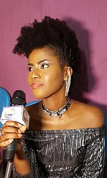 MzVee's music contains elements of afropop, R&B and dancehall and her strong vocal abilities earned her a nomination for 'Female Vocalist of the Year'[25] at the 2015 Ghana Music Awards and the award for 'Most Promising Act' at the 2015 Ghana Music Honors.[26] She is regarded as one of the stars of Ghana's dancehall scene and received the award for 'Best Female Vocalist of the Year'[27] at the 2015 Ghanaian dancehall awards, BASS awards. Her trademark natural African hair and hit single ‘Natural Girl’ has made her an inspiration to young girls across Africa who want to celebrate their natural look.[28]