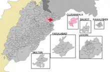 | Region | Gujranwala City Tehsil (partly) including Eminabad town, Gujranwala Saddar Tehsil (partly) and Kamoke Tehsil (partly) inclujding Kamoke city of Gujranwala District |