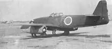 At this point, the second prototype was close to completion, and approximately 23 more airframes were under construction.[1] One of these was a two-seat trainer. Other follow-on versions proposed had included a reconnaissance aircraft, and a fighter armed with two 30 mm Type 5 cannons with 50 rounds per gun. These were expected to be powered by more advanced developments of the Ne-20, known as Ne-20-Kai 5.59 kN (570 kgf) or Ne-130 8.826 kN (900 kgf) or Ne-230 8.679 kN (885 kgf) or Ne-330 13.043 kN (1330 kgf), which were planned to have approximately 15% to 140% better thrust than the Ne-20.