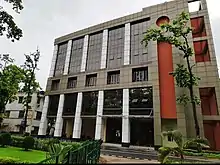 The campus spans 187 acres (0.75 km2).[21] [22] The main entrance is located on the eastern end of the campus, facing Mahatma Gandhi Road. The institute's academic facilities are located in the eastern half of the campus; these include the department buildings, laboratories and workshops, lecture halls, computer centres, and the central library.[23] The campus has separate buildings for the departments of Computer Science Engineering, Electronics and Communication Engineering, management, Chemistry, Biotechnology. Each department has its own library, in addition to the central library, which holds more than one lakh resources including books, periodicals, and journals in print and electronic format.[24] A new lecture hall complex named was inaugurated as a part of the institute's campus development plans, and it currently serves undergraduate students. The old Academic complex has several departments and is currently used for the academic classes and lectures for undergraduate, postgraduate, and doctoral students.