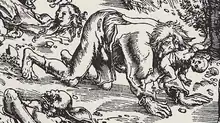 John Clark Strange bought Butts's prints on 29 June 1853 and later acquired the rest of the collection that was sold to Henry George Bohn. Although he originally wanted to produce a biography on Blake, he later abandoned this idea after he learned of Gilchrist's biography. However, his journal was filled with his notes for the biography, and contain many accounts from those who knew Blake, excerpts from Blake's journal, and analysis of Blake's work.[12] In his journal, he describes Nebuchadnezzar "crawling on his belly, naked covered with hair & nails grown long, eating grass.—'What was singular was that Blake's conception was almost a facsimile of an ancient German print of the same subject and which design Blake had never seen."[13] Kenneth Clark identified the earlier image as a book illustration of a werewolf by Lucas Cranach the Elder,[14] although a closer similarity is with the small figure of the saint in Albrecht Dürer's 1496 engraving The Penance of St. John Chrysostom.[15]