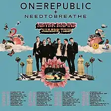 The Never Ending Summer Tour was the sixth headlining concert tour by American pop rock band OneRepublic, in support of their fifth studio album Human (2021). It began on July 16, 2022, in Bristow, Virginia and concluded on September 14, 2022, in Nashville, Tennessee. They were joined by Needtobreathe and special guests; Brynn Cartelli, Amy Allen, and John K.