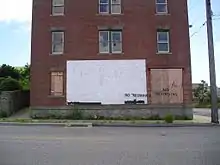 The neighborhood of Fort Trumbull once consisted of nearly two-dozen homes, but they were seized by the City of New London using eminent domain. This measure was supported in a 5–4 ruling in the 2005 Supreme Court case Kelo v. City of New London, and the homes were ultimately demolished by the city as part of an economic development plan. The site was slated to be redeveloped under this plan, but the chosen developer was not able to get financing and the project failed. The empty landscape of the Fort Trumbull area has been widely characterized as an example of government overreach and inefficiency.[16][17][18][19]
