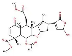 Nimbolide a natural compound has been isolated from the neem leaves and semi-synthetically modified into a Nimbin's derived molecule to improve the bioefficacy of the compound.[20]