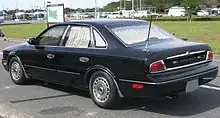 In October 1989 the third-generation President, designated JHG50, debuted at the Tokyo Motor Show, with sales beginning a year later. Concurrently, a short-wheelbase version of the chassis debuted in the United States as Infiniti Q45 or Nissan Infiniti Q45 in Japan, with a different front and rear end — in response to the 1989 Lexus LS and the 1985 Acura Legend. Renewed emphasis sought to position the President as a top-level luxury limousine, with high levels of standard equipment, including Connolly Leather or wool and silk upholstery. This time the vehicle adopted many European styling cues, with its front now resembling the contemporary Jaguar XJ. Unlike the previous, hand-made generations, this was the first President built on an assembly line.[2]