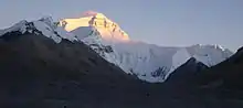 ![]() Everest's north face, lit up by the setting sun |