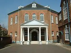 Amid this metropolitan culture, the city burghers had built a sophisticated political structure. Freemen, who had the right to trade and to vote at elections, numbered about 2,000 in 1690, rising to over 3,300 by the mid-1730s. With growth partly the result of political manipulation, their numbers did at one point reach one-third of the adult male population.[40] This was notoriously the age of "rotten" and "pocket" boroughs and Norwich was unusual in having such a high proportion of its citizens able to vote. "Of the political centres where the Jacobin propaganda had penetrated most deeply only Norwich and Nottingham had a franchise deep enough to allow radicals to make use of the electoral process."[46] "Apart from London, Norwich was probably still the largest of those boroughs which were democratically governed," says Jewson 1975, describing other towns under the control of a single fiefdom. In Norwich, he says, a powerful Anglican establishment, symbolised by the Cathedral and the great church of St Peter Mancroft was matched by scarcely less powerful congeries of Dissenters headed by the wealthy literate body [of Unitarians] worshipping at the Octagon Chapel.[47]