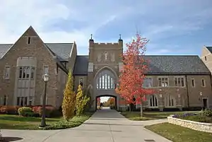 Eck Hall was built in 2010. The $57-million, 85,000-square-foot building was connected to the original building through a suspended walkway that constitutes a common area. Eck includes both classrooms and faculty and administrative offices, as well as space for student services and activities. In addition to a 205-seat moot courtroom, the Patrick F. McCartan Courtroom, there are four lecture halls, five seminar rooms, and three skills training rooms available for classes and events.[37] The construction of Eck and the connecting walkway to Biolchini also allowed for the creation of a new chapel dedicated to St. Thomas More. The building was named in honor of school graduate, benefactor, and advisor Frank E. Eck.[38]