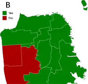 Proposition B would allow the City to issue $60 million in bonds to finance the purchase and maintenance of historical resources owned by the City and the San Francisco Unified School District. This measure required a two-thirds majority to pass.