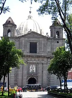 Its major feature is the exceptional size of its dome, the largest built in Mexico City during the colonial period.[1] The dome allows for a cupola that measures 30 meters wide and 15 meters high.[4][6] The side of this dome requires the church to have large, thick walls and buttresses to support its weight.[4] In Neoclassic style, the towers reproduce the main lines of the body of the church and the small pediments, lanterns, ribs and cross all adhere to the lines of the great dome.[1]