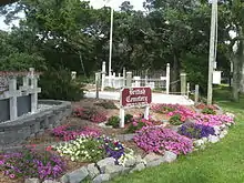 The island is home to a British cemetery. During World War II, German submarines sank several British ships, including HMT Bedfordshire, and the bodies of British sailors were washed ashore.[11] They were buried in a cemetery on the island. A lease for the 2,290-square-foot (213 m2) plot, where a British flag flies at all times, was given to the Commonwealth War Graves Commission for as long as the land remained a cemetery, and the small site officially became a British cemetery. The United States Coast Guard station on Ocracoke Island takes care of the property.[34] A memorial ceremony is held each year in May.[35]