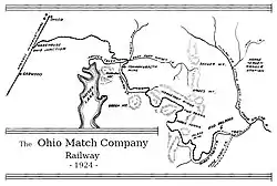 The Ohio Match Company Railway was a logging railroad in northern Idaho that operated from Garwood, Idaho, around Hayden Lake and followed the Burnt Cabin Creek to the Little North Fork of the Coeur d'Alene River.[1][2] The right of way roughly follows Ohio Match Road from Garwood, Idaho Burnt Cabin Road and then over the entirety of Burnt Cabin Road today. The Ohio Match railroad aided in harvesting white pine timber reserves that remained after the fire of 1910 for the production of matchsticks.[1][3][2]