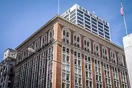 Ground was broken for One Wilshire in 1964, and the building was completed in 1966[2] at 624 South Grand Avenue in downtown Los Angeles, on the far eastern end of Wilshire Boulevard.[3][4] The high-rise was designed by Skidmore, Owings and Merrill[4] and built by Del E. Webb Construction[9] to be a standard office building[2] with thirty floors[2] and 664,000 square feet (61,700 m2) of space.[2] Even though address of the building is on Grand, the building's name, One Wilshire, was suggested by Morris Pynoos,[10] as vice president of S. Jon Kreedman Co., who saw the building's location as the start of Wilshire from the east and end of Wilshire from the west. It selected by developer S. Jon Kreedman, who would later become known for converting The Century Towers in 1977.[3] At one point in its first few decades, One Wilshire entirely housed law offices.[5] "Traditional corporate tenants" began moving out in the early 1990s,[2] and the building instead became popular with telecommunications companies, in part because the AT&T Switching Center was only two blocks away.[2]