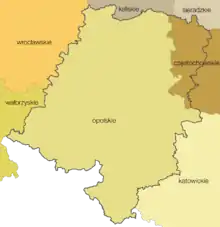 Opole Voivodeship, or Opole Province[3] (Polish: województwo opolskie [vɔjɛˈvut͡stfɔ ɔˈpɔlskʲɛ]), is the smallest and least populated voivodeship (province) of Poland. The province's name derives from that of the region's capital and largest city, Opole. It is part of Upper Silesia. A relatively large German minority, with representatives in the Sejm, lives in the voivodeship, and the German language is co-official in 28 communes.