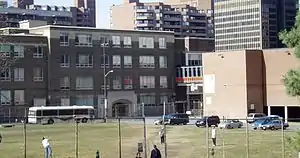 The building was previously home to a women's college, and Ottawa Tech moved there in 1916. The school originally offered both standard high school programs and courses in auto mechanics, electricity, drafting, computers, and graphic arts. The original building was expanded several times and a new structure was built across the street in the 1960s, with a bright orange walkway connecting the buildings over Slater Street.